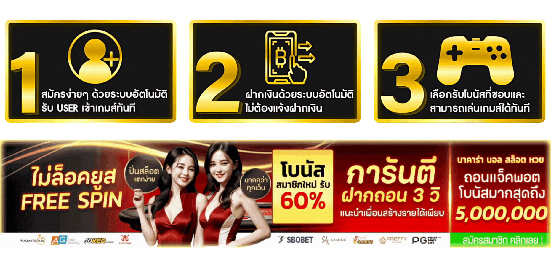 ตอบ : มีโบนัสต้อนรับสมาชิกใหม่ 100% โปรโมชั่นคืนยอดเสีย 10% ทุกสัปดาห์ และกิจกรรมแจกเครดิตฟรีประจำเดือน